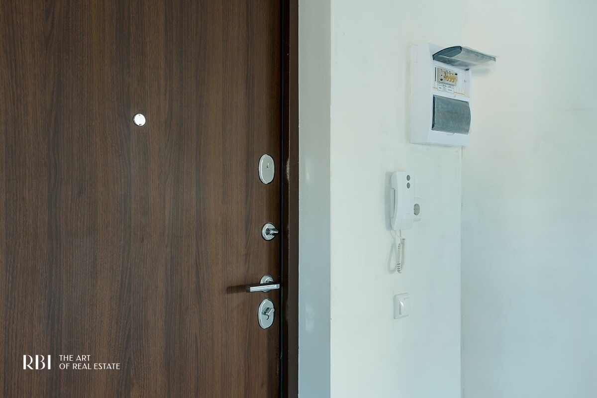 - Дверь в квартиру: металлическая, усиленная, с дополнительной звукоизоляцией и замками высокой взломоустойчивости.